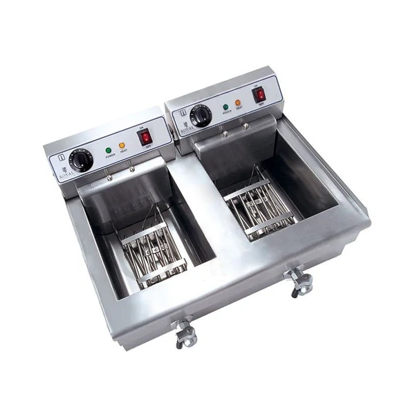 Friteuse acier inox 2 bacs 16 litres cuve et resistance amovible robinet vidange 380 V professionnelle 3614029