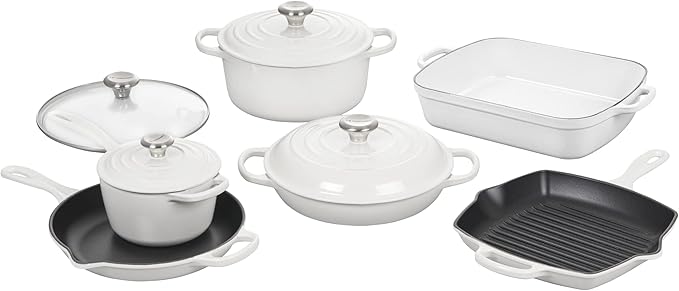 Le Creuset Signature Enameled Cast-Iron Cookware Set, 10-Piece, White